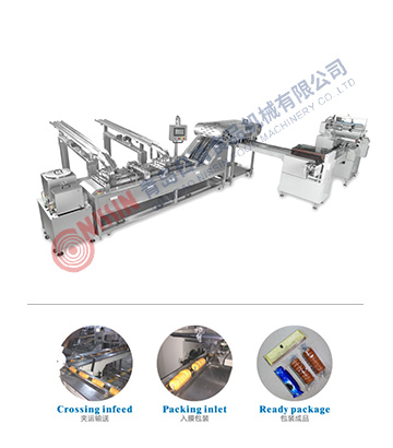 適用于多枚餅干的無托盤集合大包裝,方、圓、橢圓等各種形狀餅干皆可。? 主要技術參數:? 包裝能力:30-120包/分(據包裝膜材質,厚度及包裝規格確定)? 包裝規格:長80-240mm,寬30-90mm,高30-80mm? 總機尺寸:(三伺服)主機部分:4020mm*1200mm? (五伺服)主機部分:4600mm*1260mm? 裝機總容量:(三伺服)5.2KW, 三相380V, 50Hz? (五伺服)8.2KW, 三相380V, 50Hz? 總重量:1500kg? 包裝材料:紙/PE,OPP/PE,OPP/AL/PE等適合于加熱封口的包裝材料